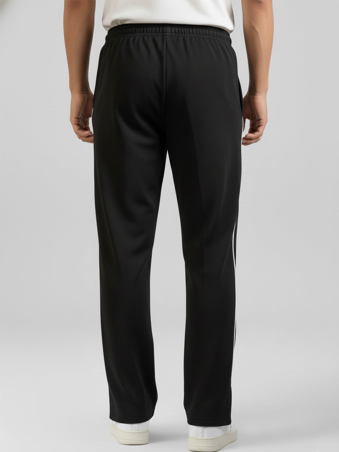 Crafted from a resilient poly-cotton terry blend, these baggy track pants balance durability with everyday wearability. The generously cut silhouette accommodates full range of motion, making them equally suited for athletic training, casual wear, or layered styling. The breathable fabric composition regulates temperature during physical activity while remaining lightweight enough for extended wear without constraint. Black base with contrasting mid-white side delivers understated sophistication and effortless versatility across multiple wardrobe combinations. It has elastic waist abdn with hidden drawstrings to provide maximum comfort.