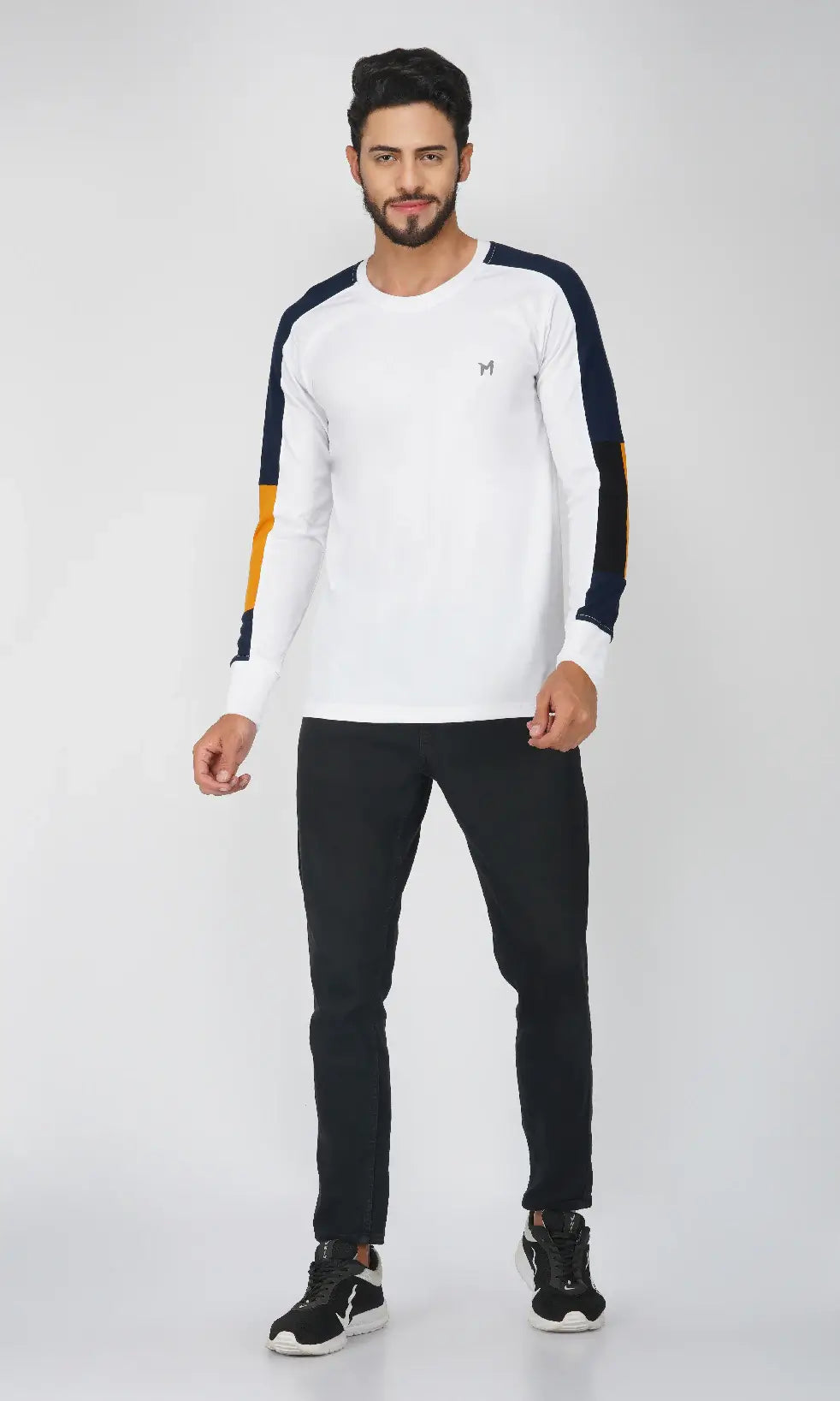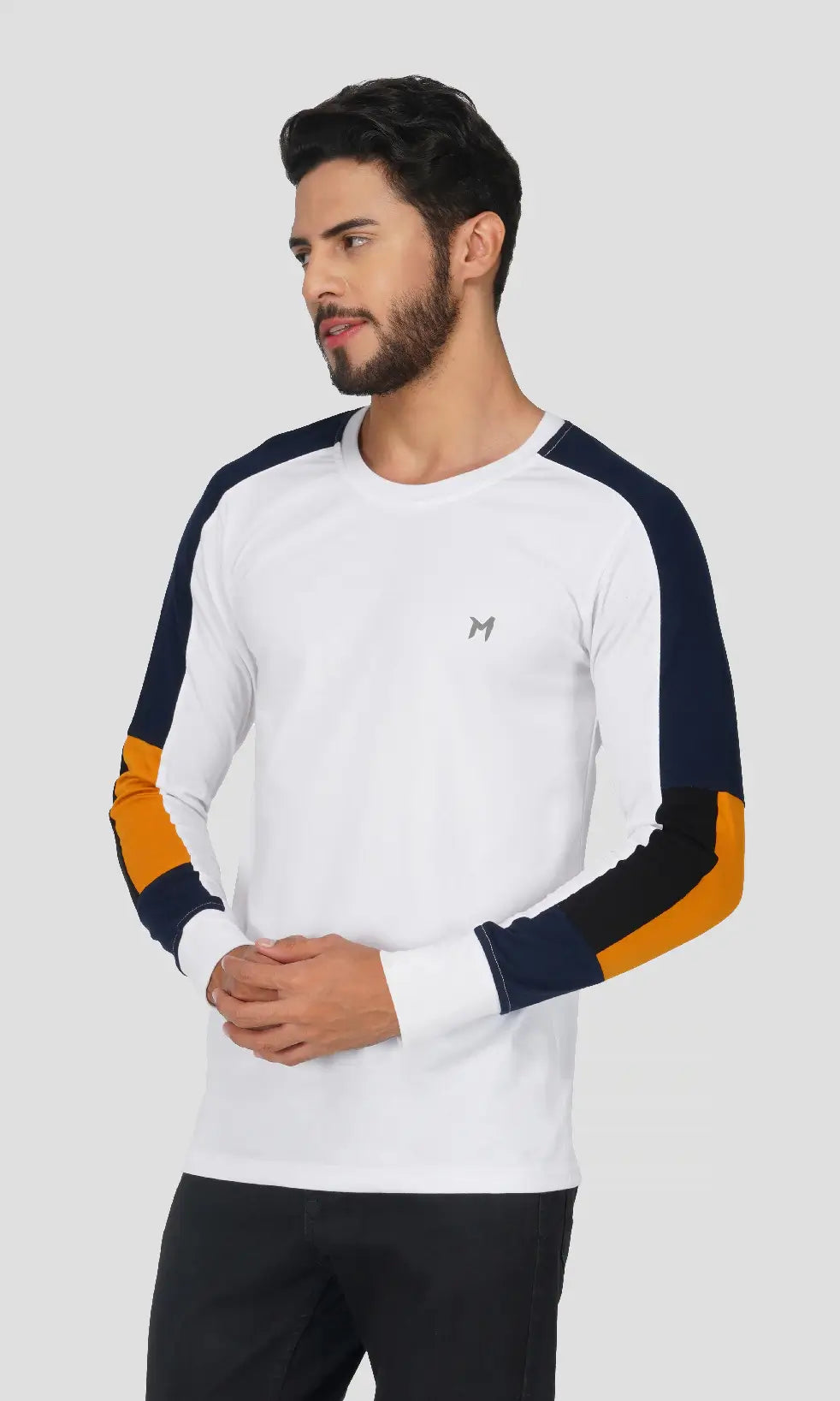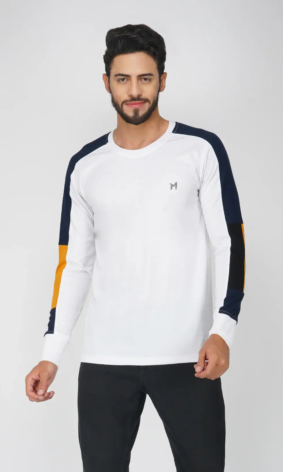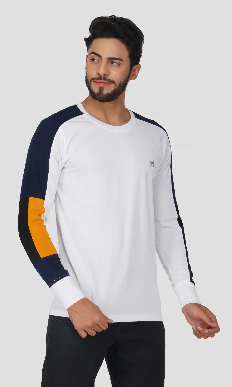 This is Fullsleeves Regular Fit T-shirt is One of the Most Fashionable & Comfortable Western Wear, made of Soft & Premium Cotton Blend 180 GSM (Poly Cotton) Fabric. Ideal for Casual or Daily Wear. Also these men's color block sleeves t-shirt can be worn during Gym or Exercise. This t-shirts is light weight and matches with a pair of Jeans or Trousers.