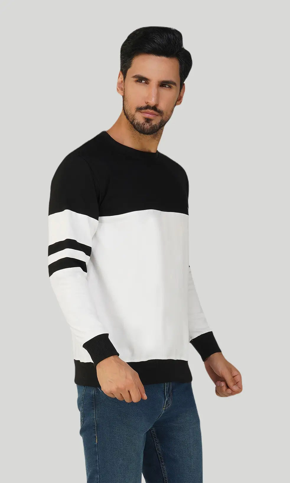 This is Winterwear ColorBlocked Sweatshirt is One of the Most Fashionable & Comfortable Western Wear in winter, made of Soft & Premium Cotton 320 GSM Fabric. Ideal for Casual, Formalwear or Daily Wear. Also these men's color block round neck sweatshirt can be worn during Gym or Exercise. This winterwear varsity is super warm and matches with a pair of Jeans or Trousers.