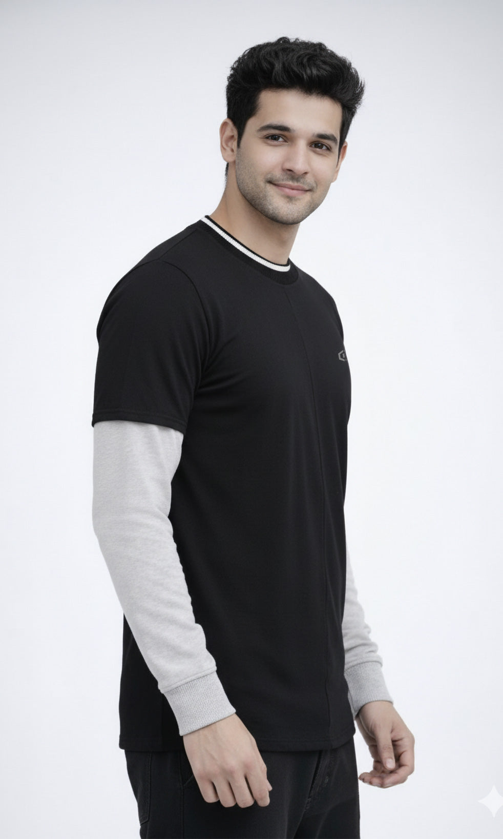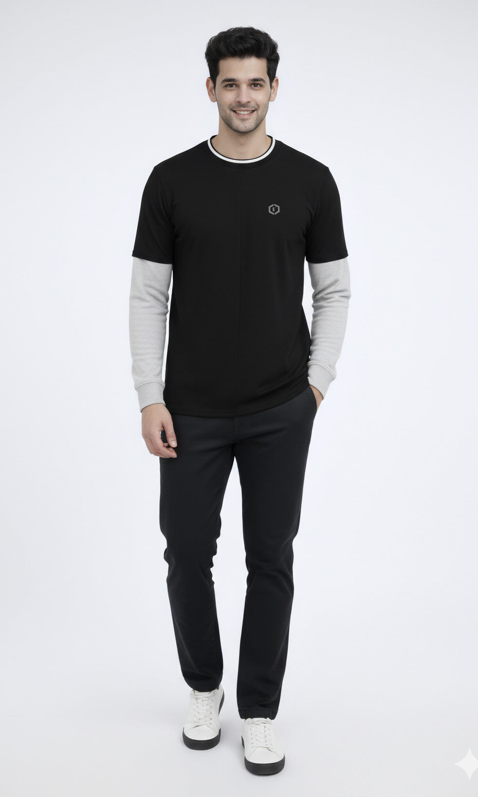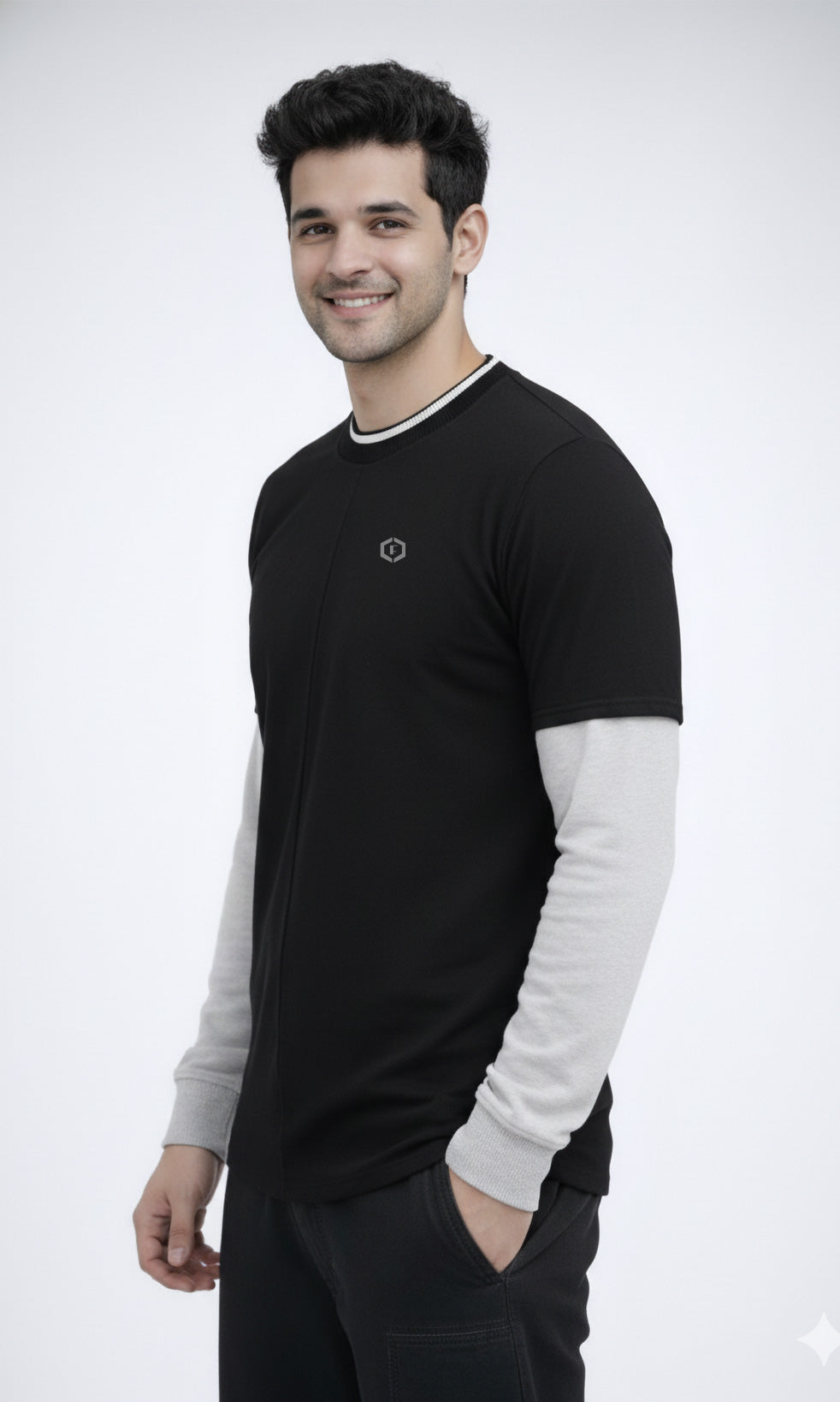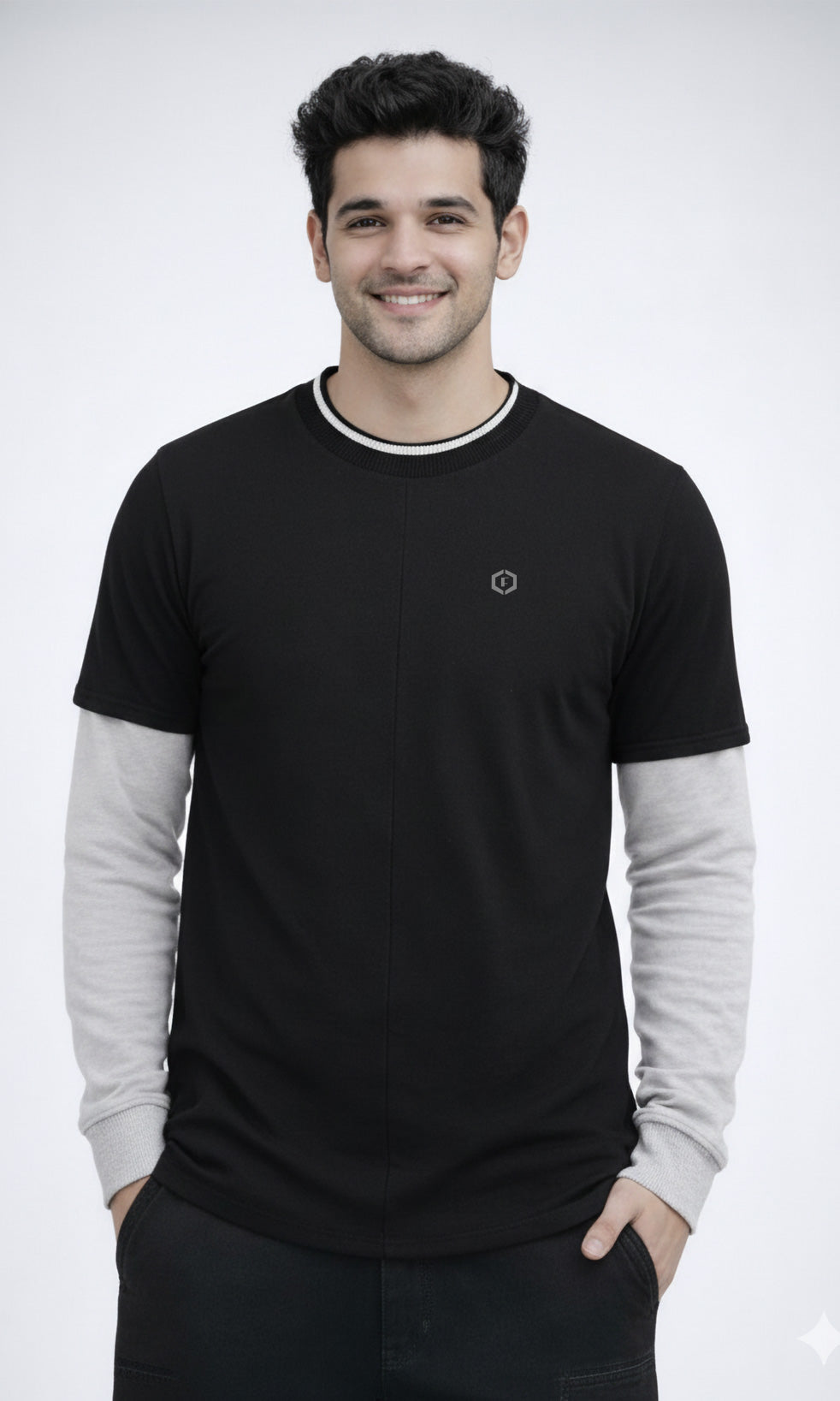 Refresh your everyday wardrobe with the Febue Men’s Colorblock Full Sleeve T-Shirt, designed for comfort, durability, and a clean modern look. Featuring a black body with contrasting grey sleeves and a ribbed neckline, this T-shirt delivers a subtle colorblock style that works perfectly for casual and smart-casual wear.