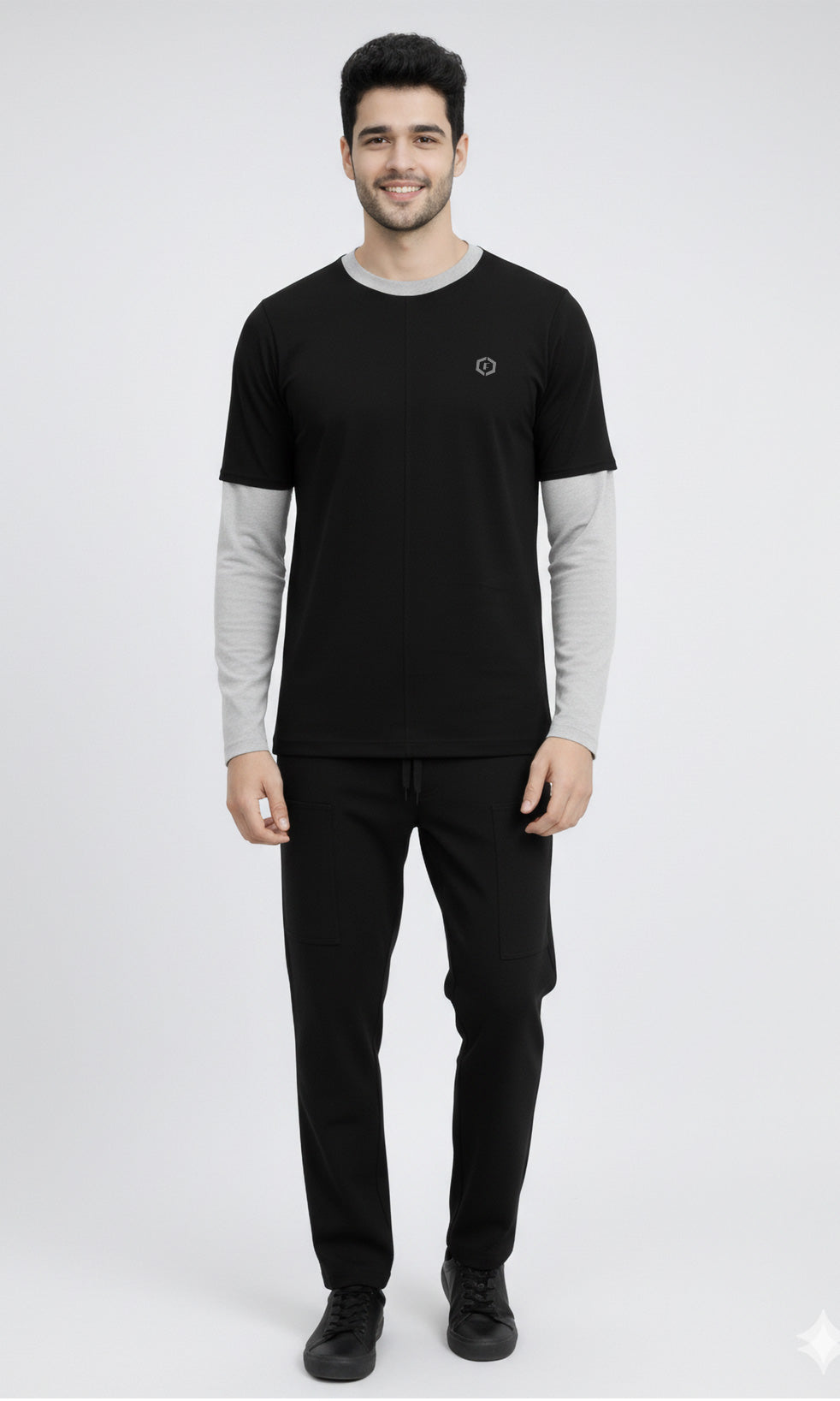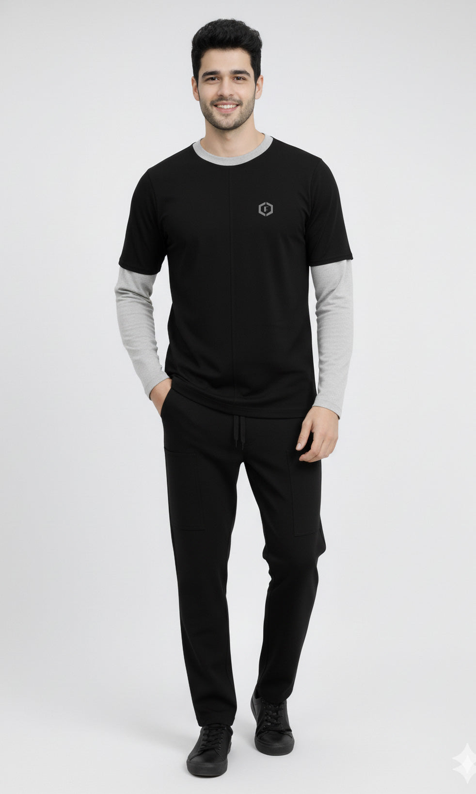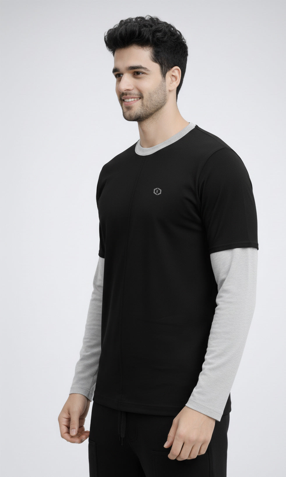 Refresh your everyday essentials with the Febue Men’s Colorblock Full Sleeve T-Shirt, designed for comfort, durability, and modern casual style. Featuring a clean black and grey colorblock design with grey sleeves and a contrast neckline, this T-shirt delivers a smart, minimal look suited for daily wear.
