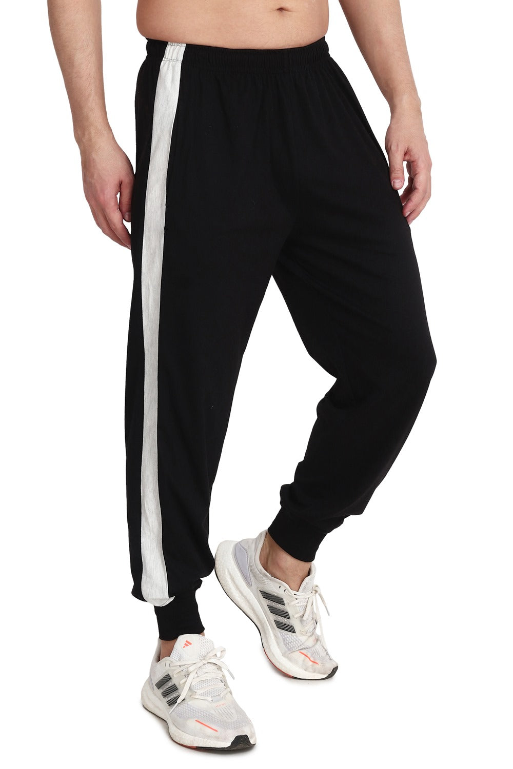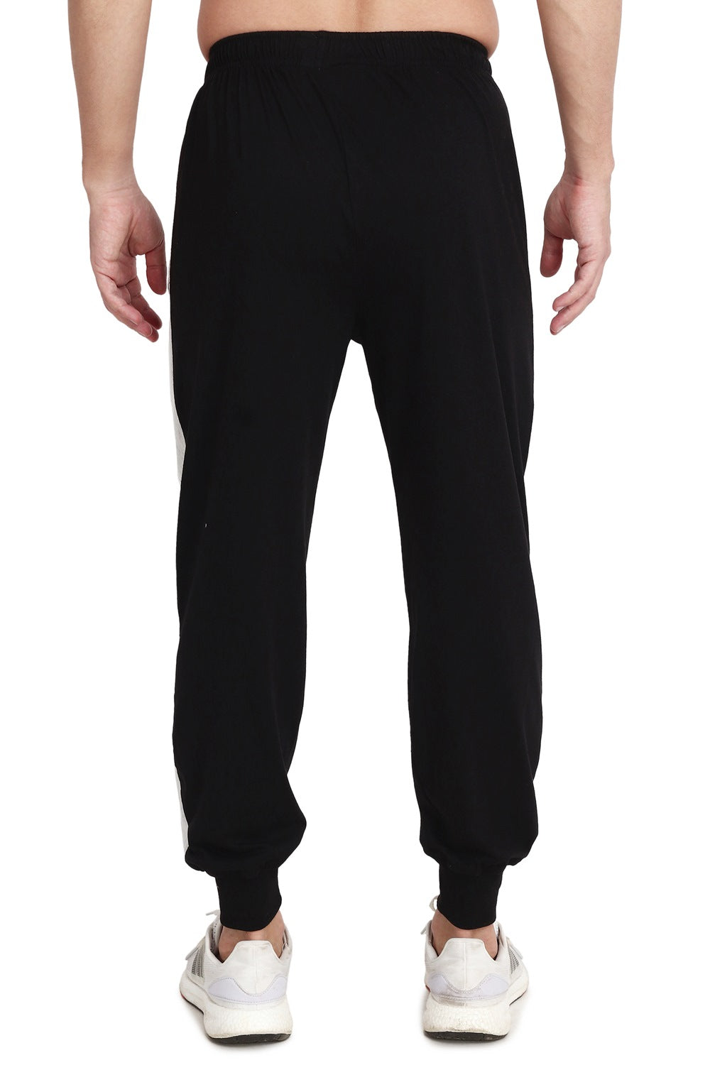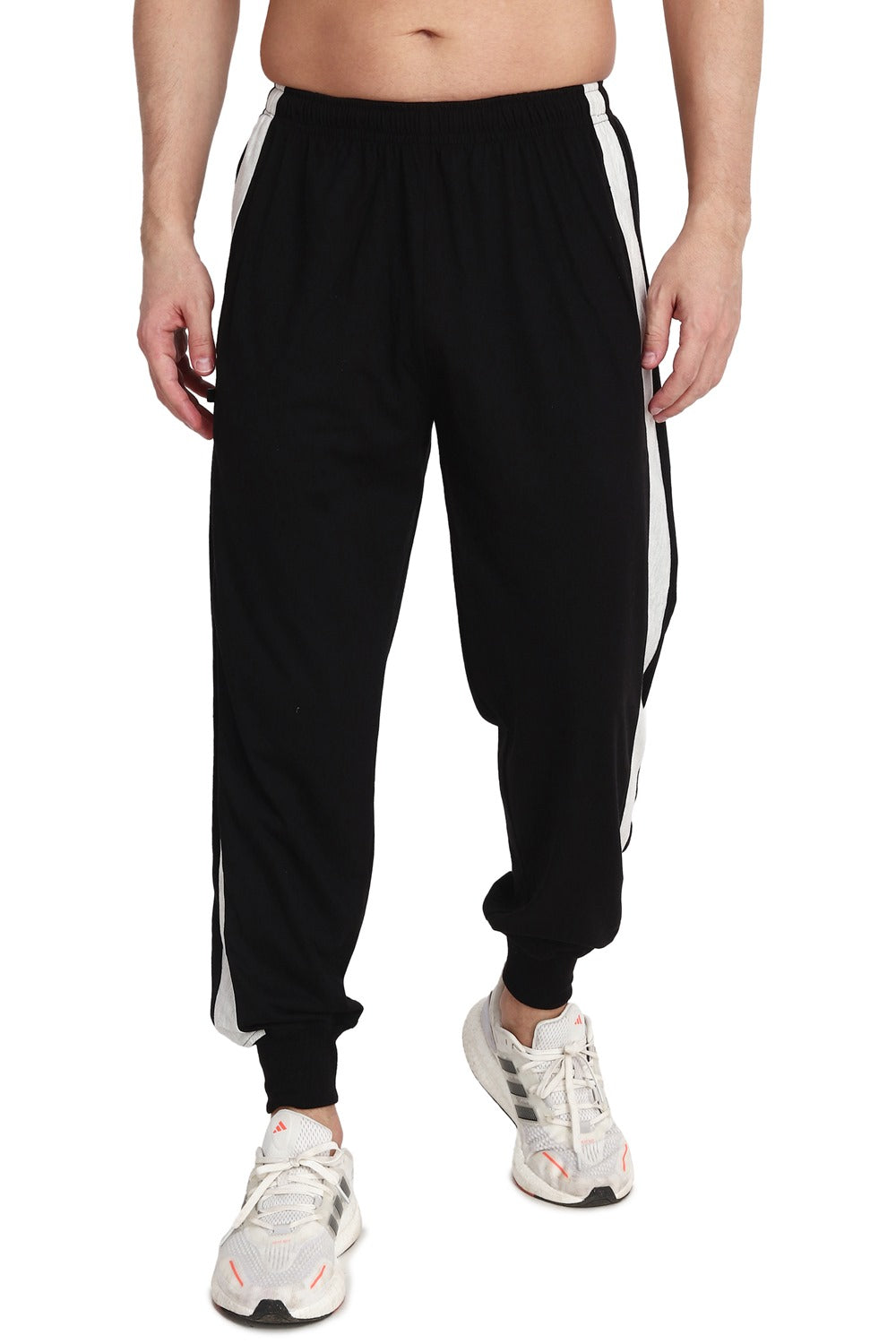 Febue Cotton Blend Men's Track Pants Black Bottom Ribbed With Side White Stripe