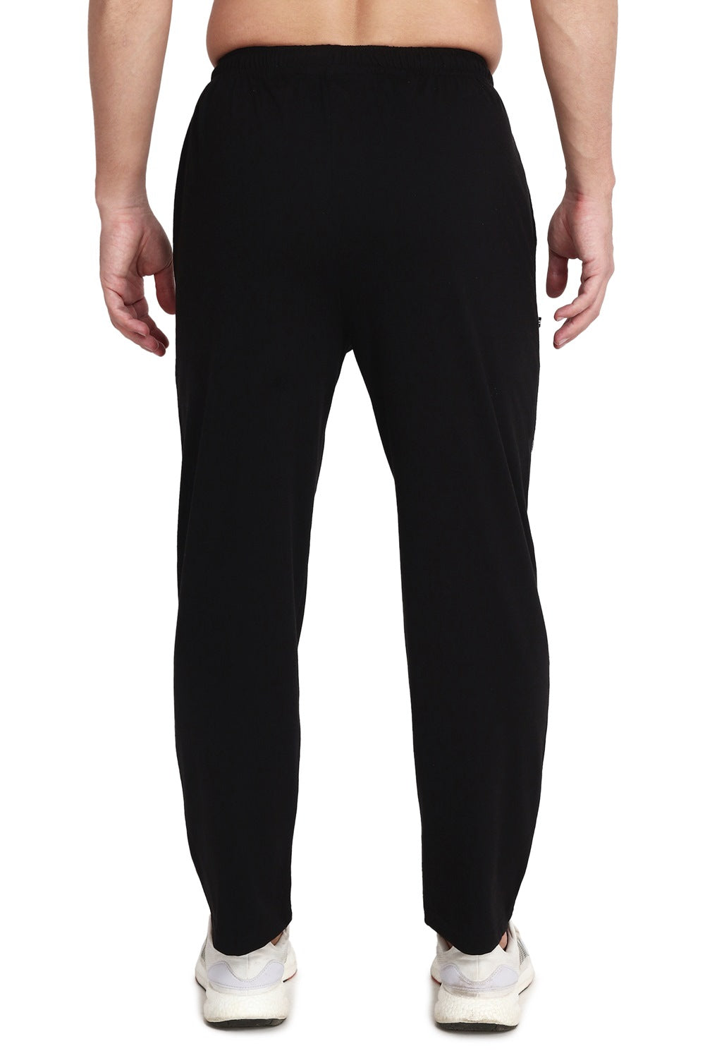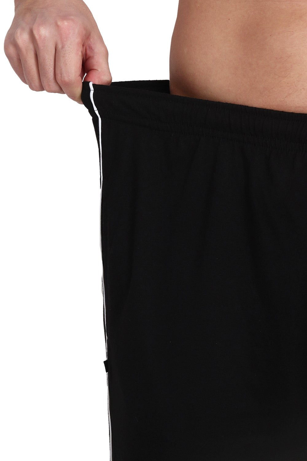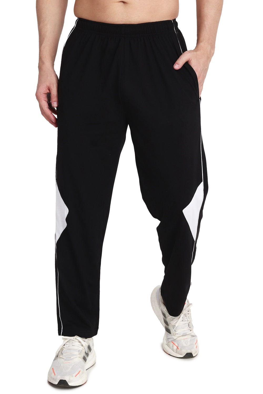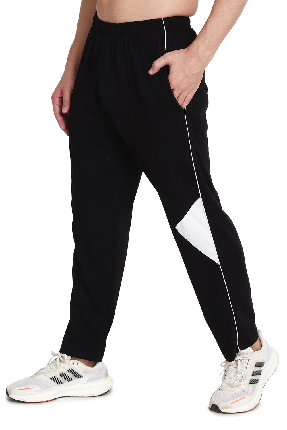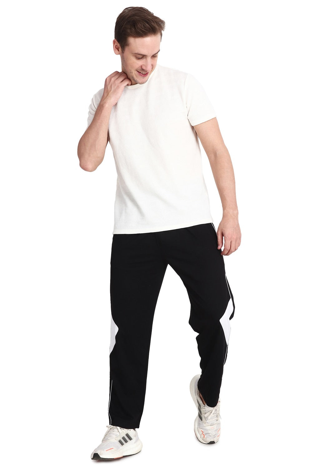 Febue Cotton Blend Men's Track Pants Black With White Pipen & Mid White Patch