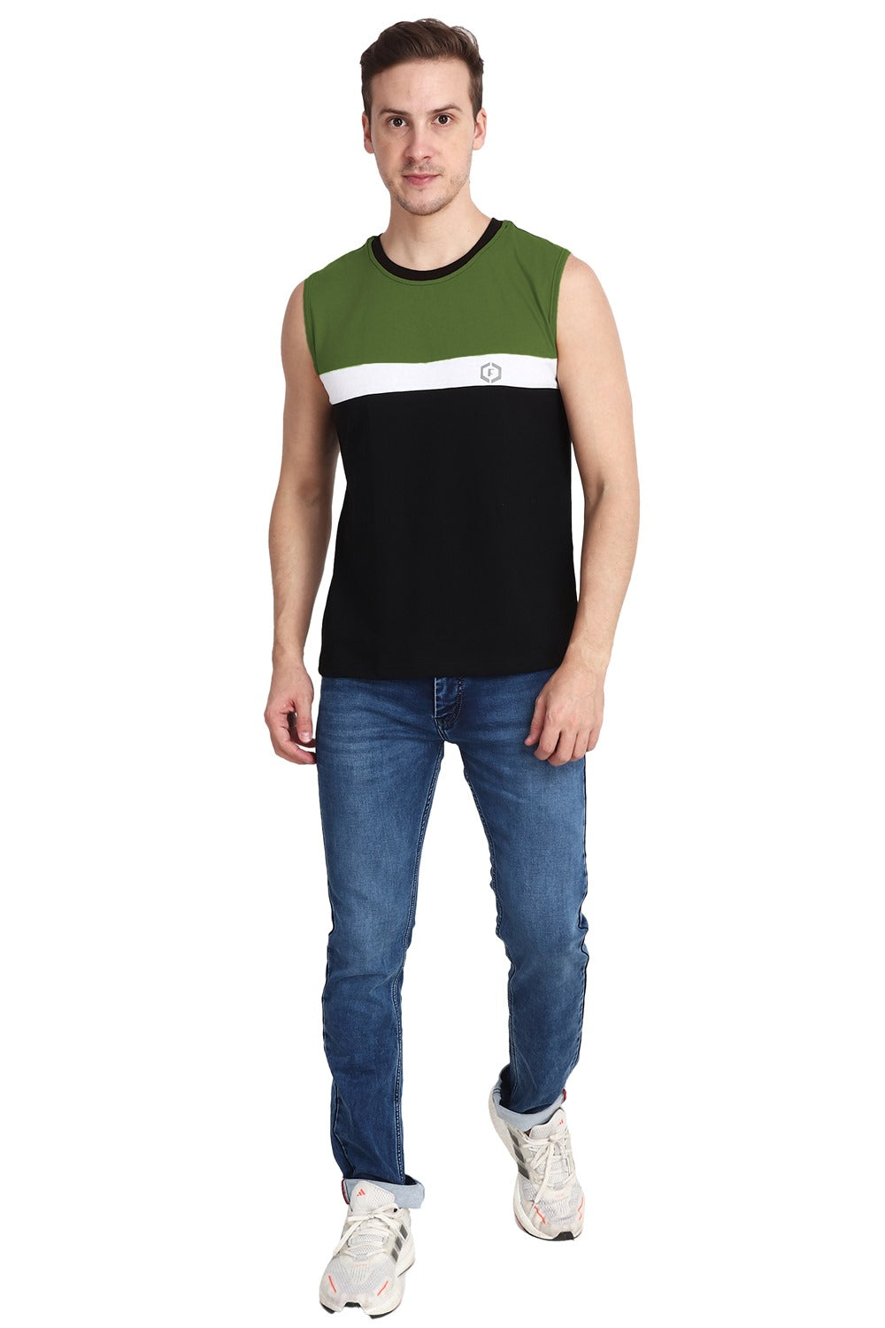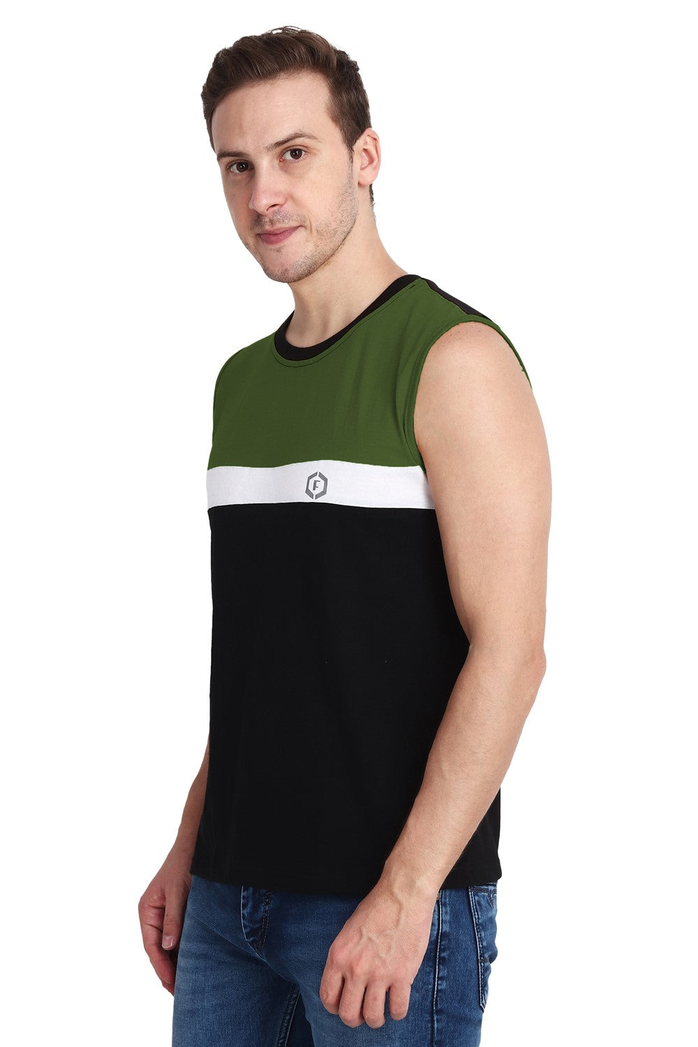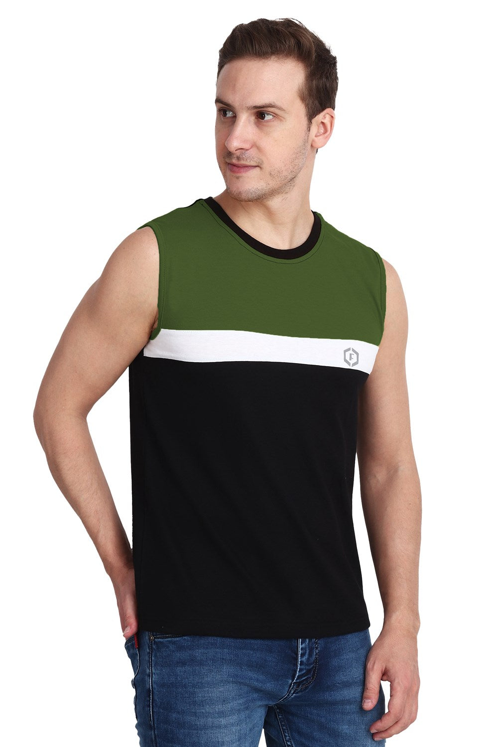 Febue Mens Color-blocked Vest Top Tank - Black Olive White
