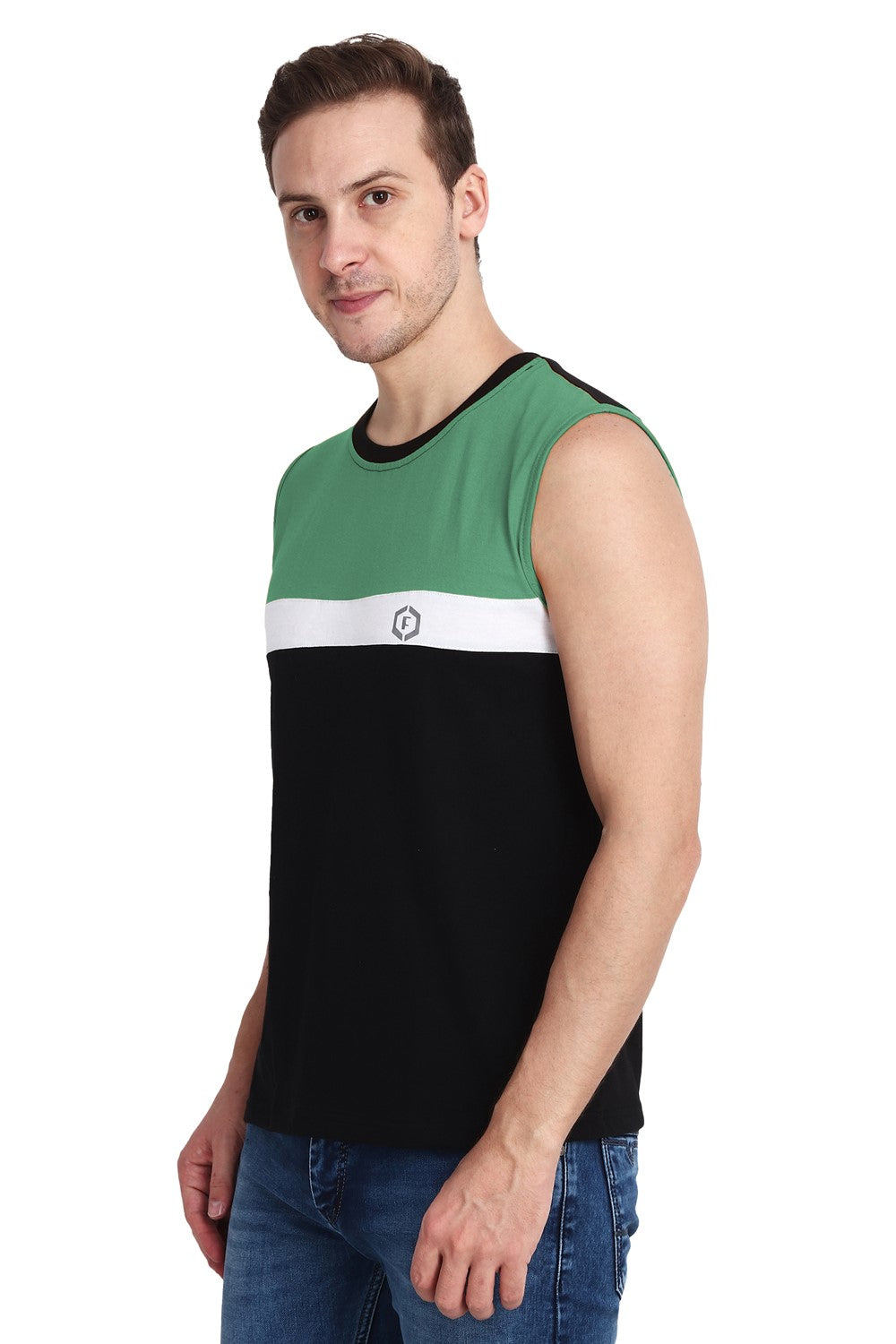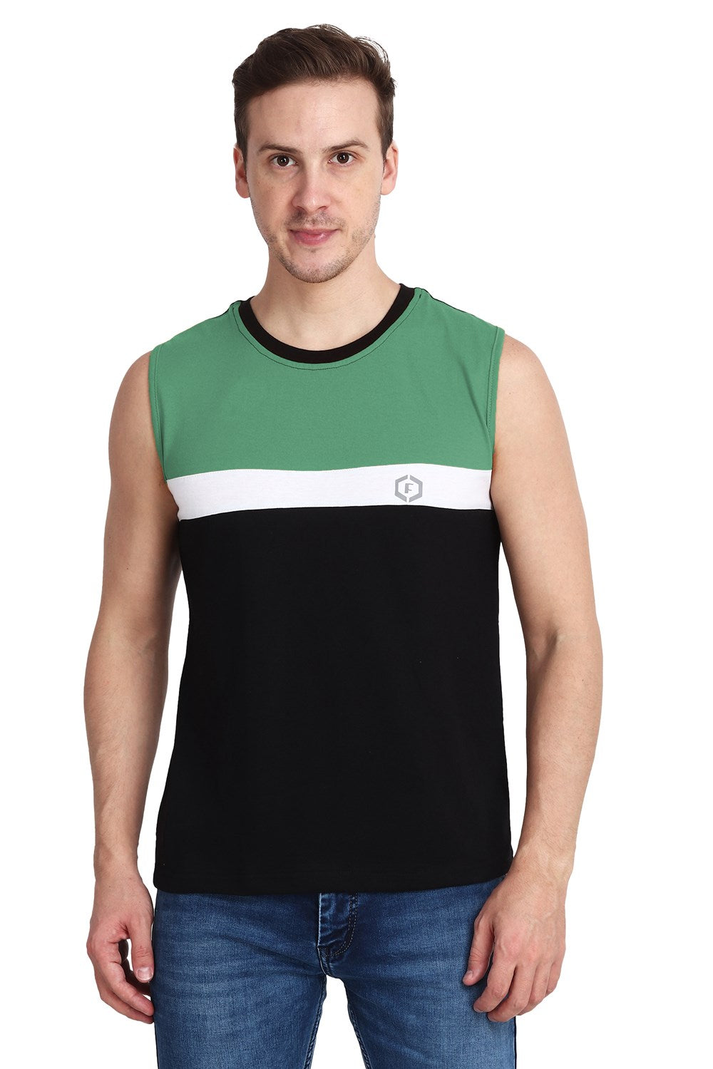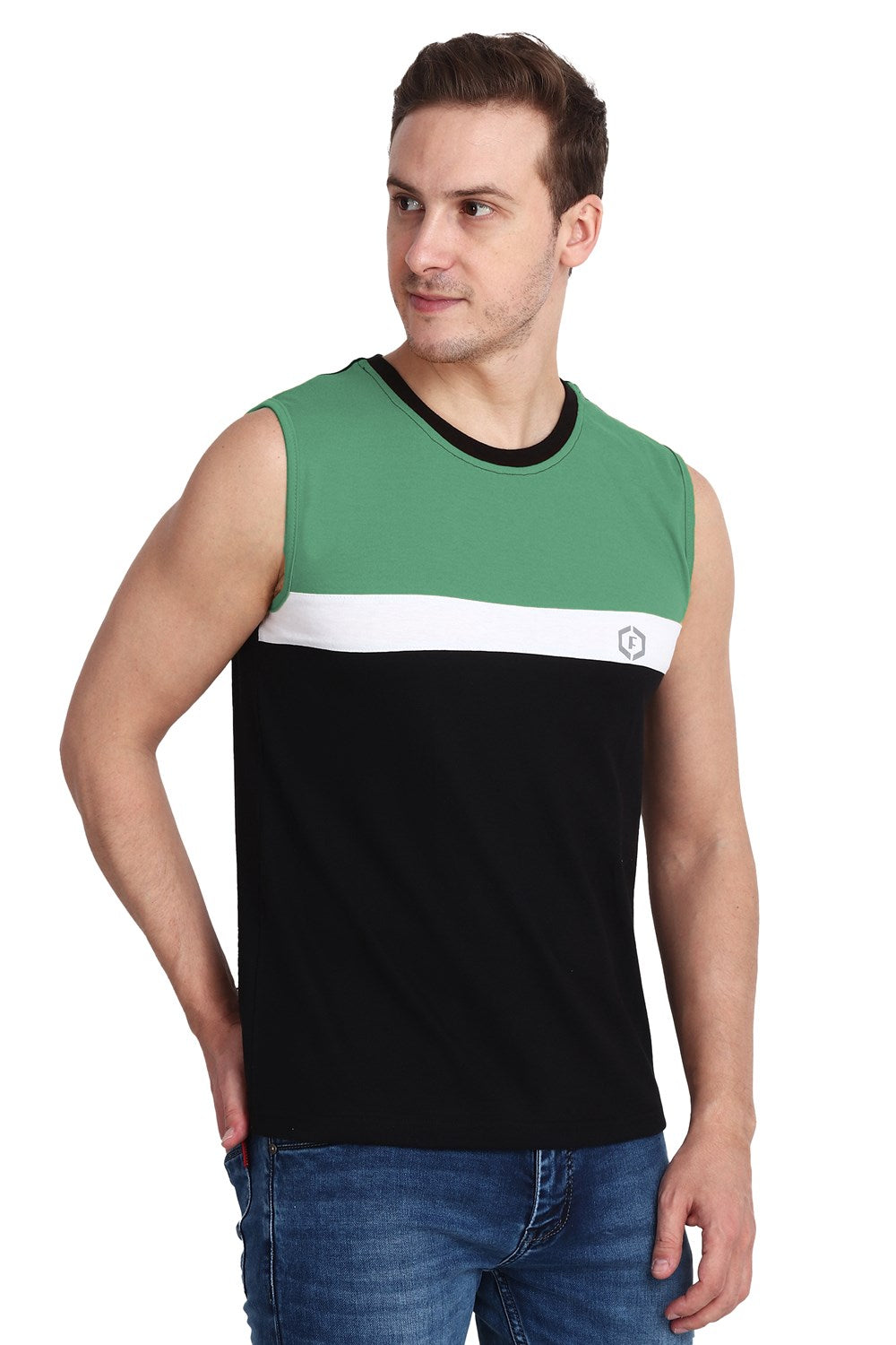 Febue Mens Color-blocked Vest Top Tank - Black Pista White