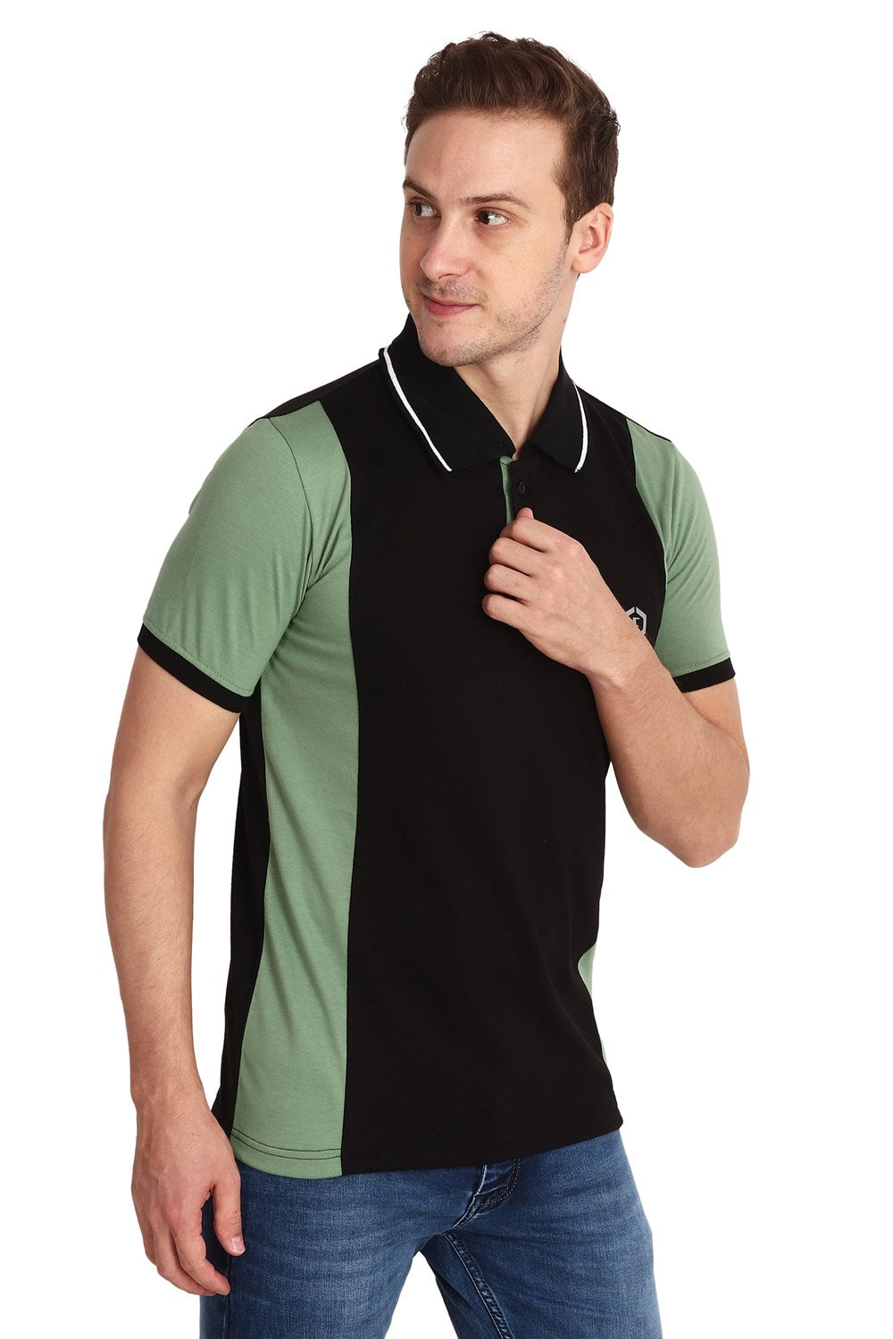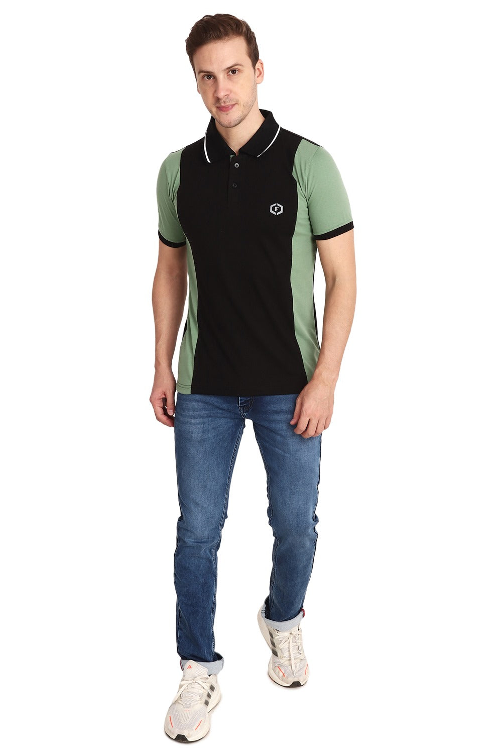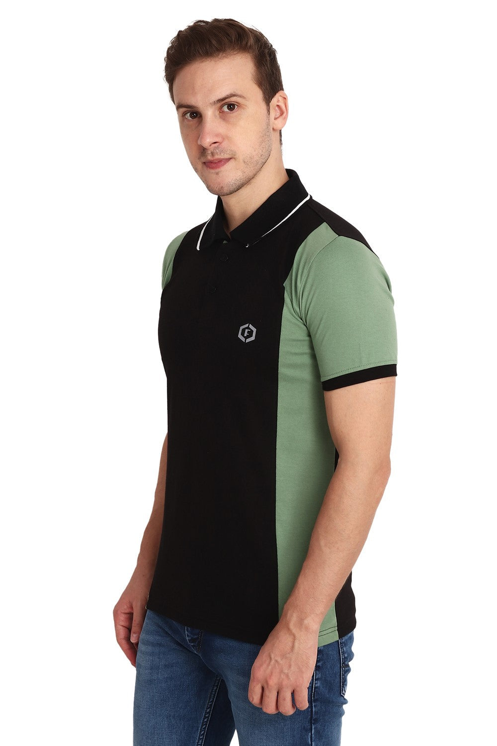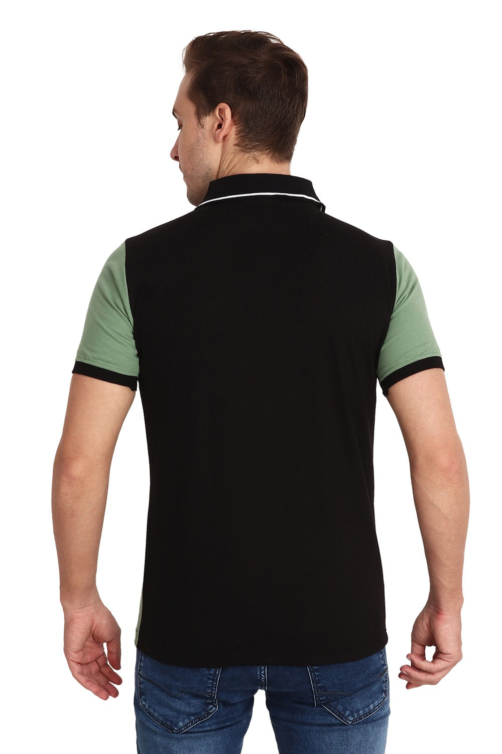 Febue Solid Men Colorblock Polo Neck Black Half Sleeves T-Shirt