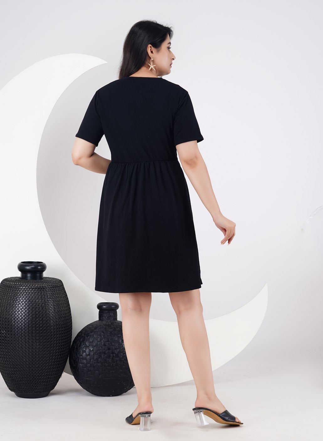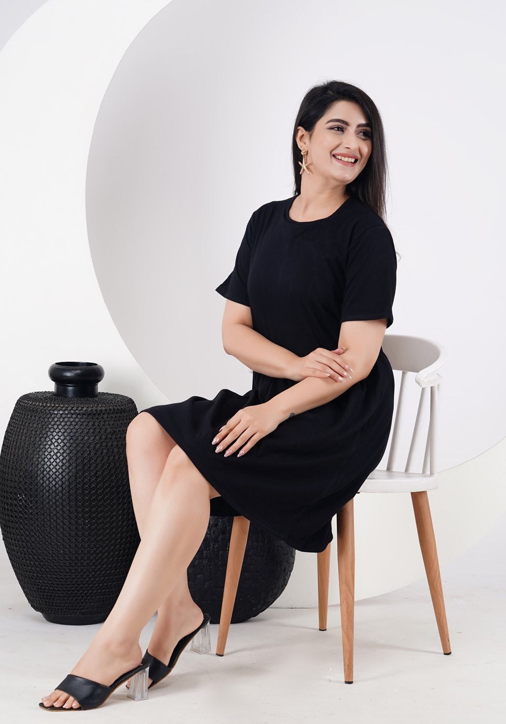 Crafted from high-quality cotton blend fabric, this solid dress expertly combines style and comfort, its fit enhances both appearance and well-being. With its elegant draping and effortless movement, this dress is the perfect choice for unparalleled comfort.