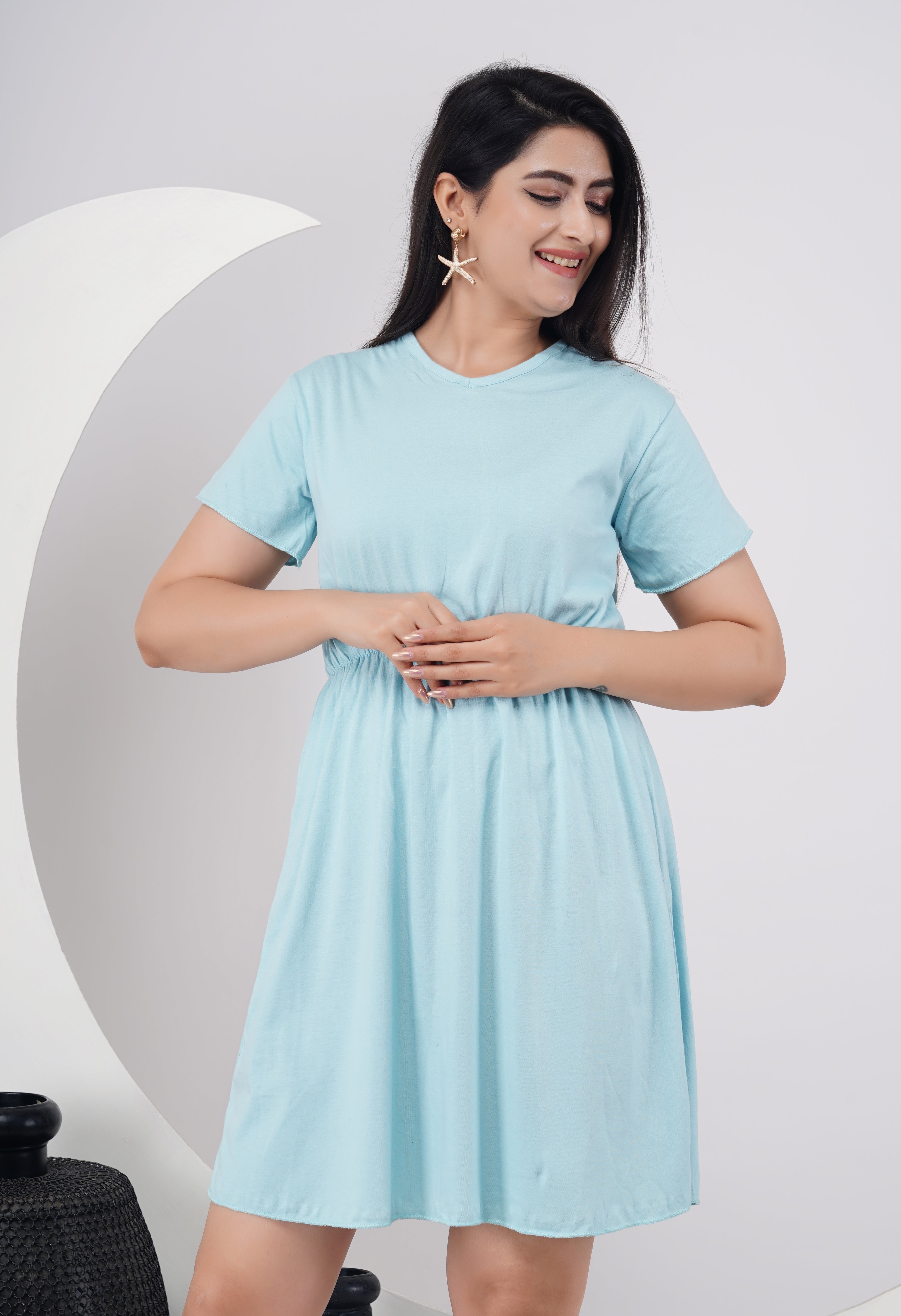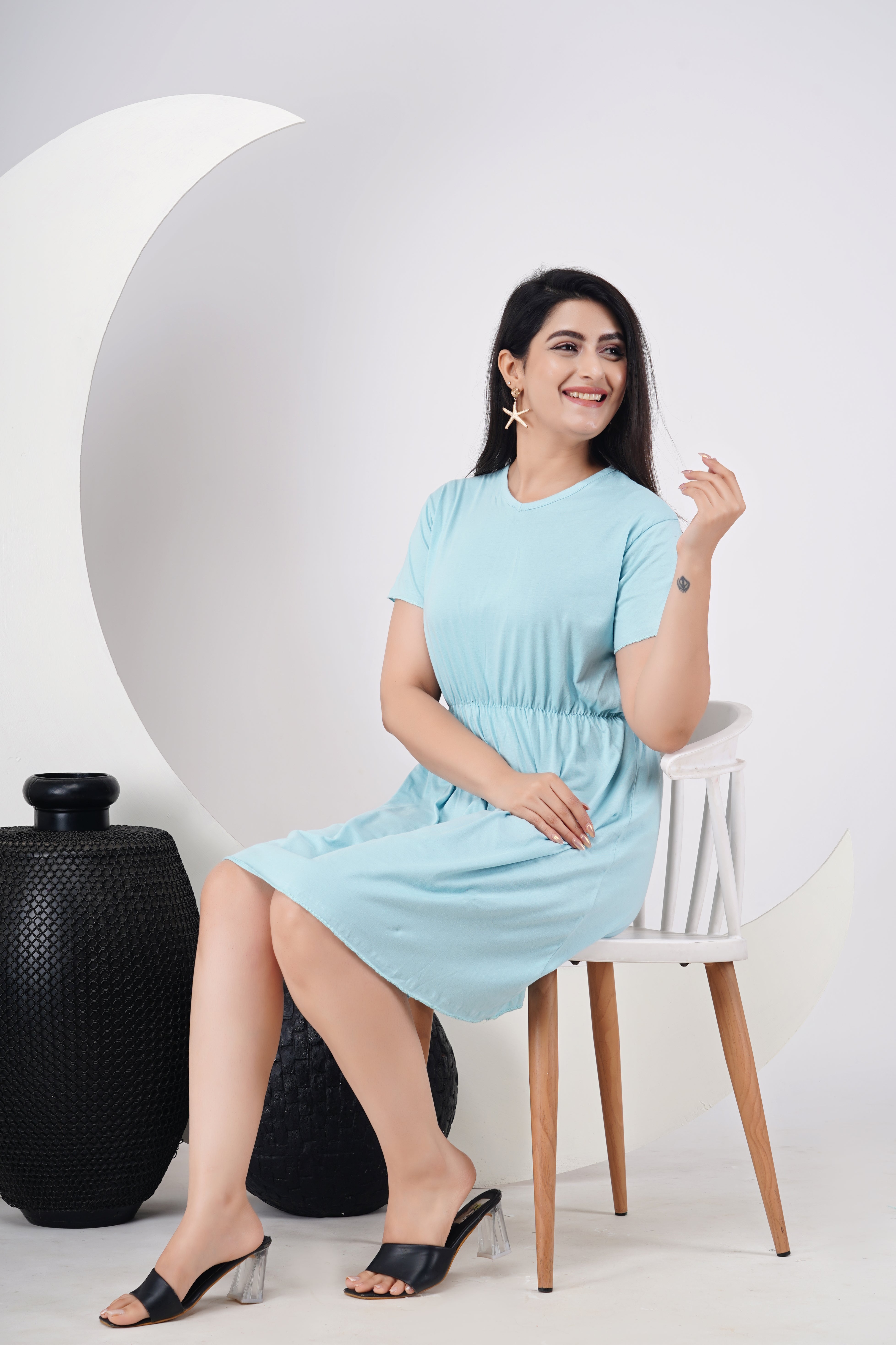 Crafted from quality cotton blend fabric, this dress expertly combines style and comfort. The elastic waistband provides support and ease, while the tailored fit enhances both appearance and well-being. With its elegant draping and effortless movement, this dress is the perfect choice for unparalleled comfort.