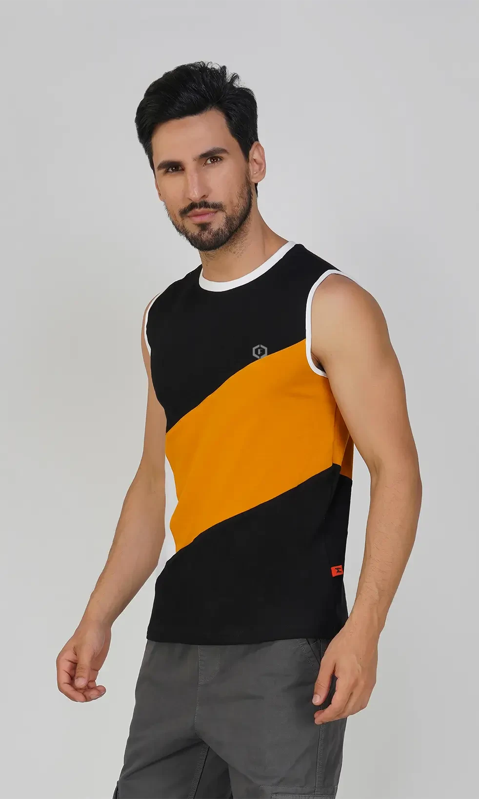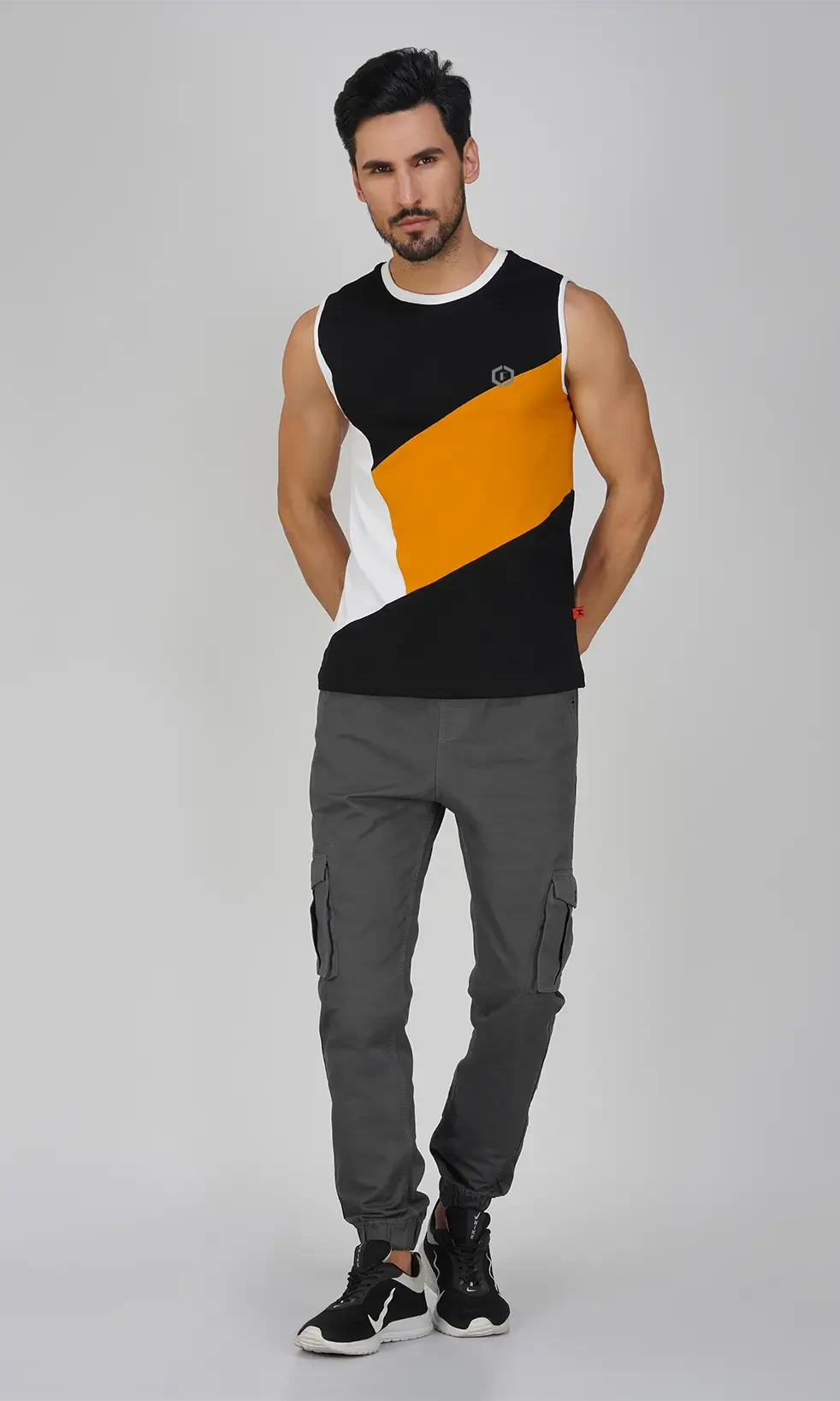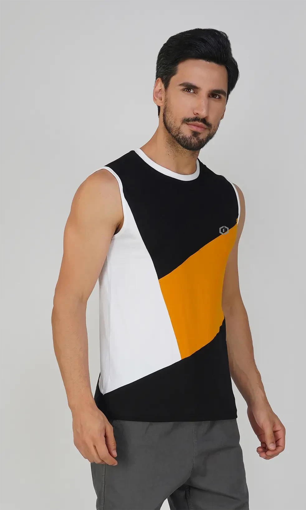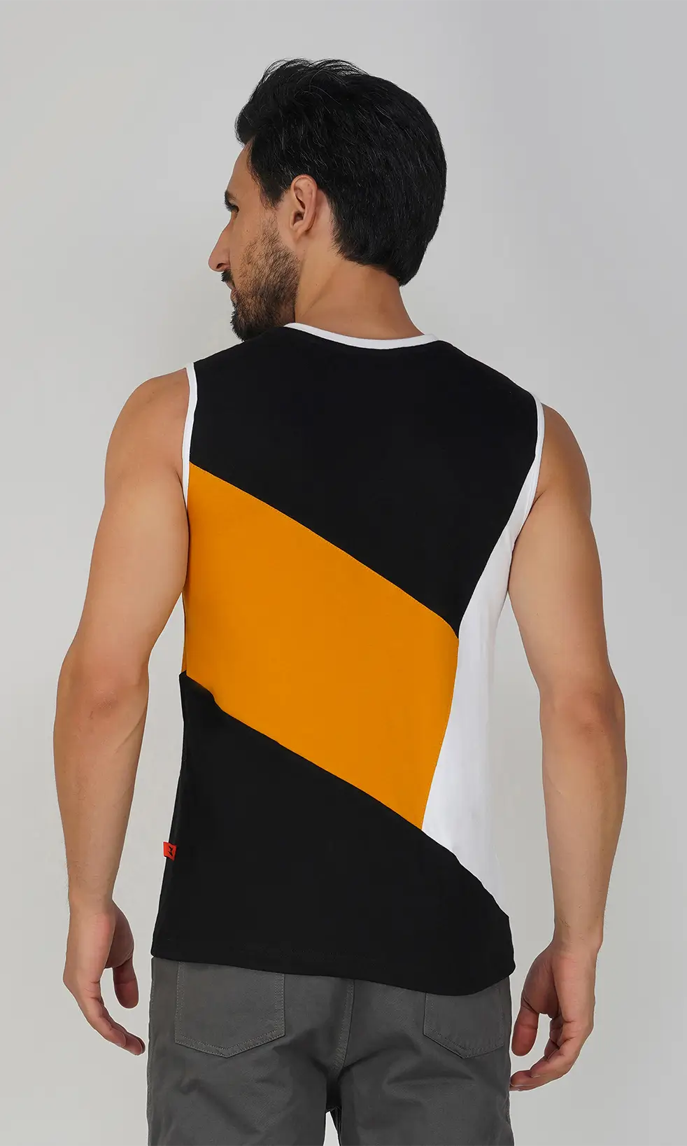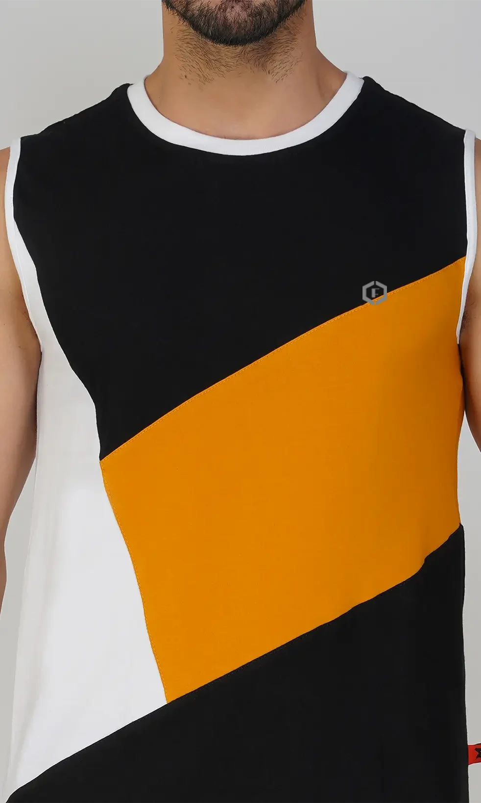 Mens Color-blocked Neck Slit Vest Slant Top Tank - Multicolor
