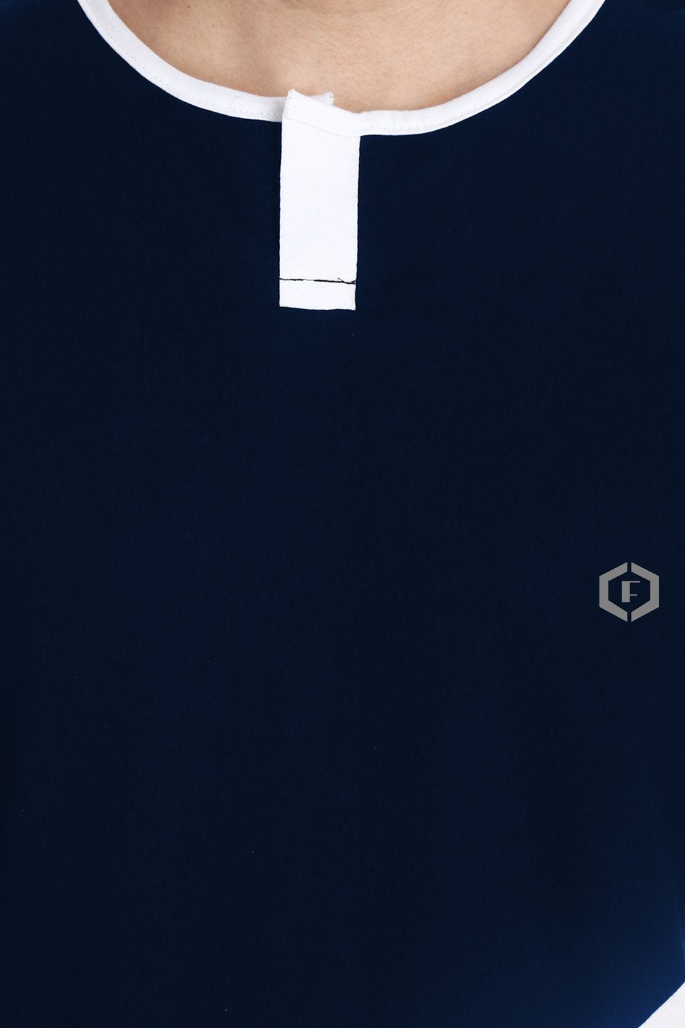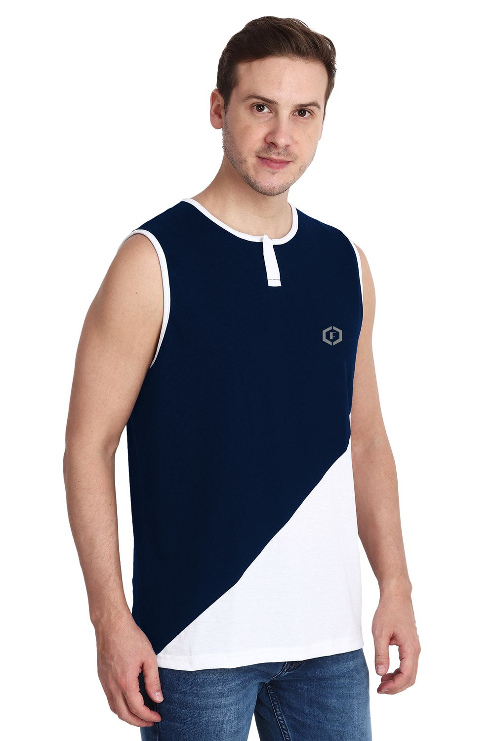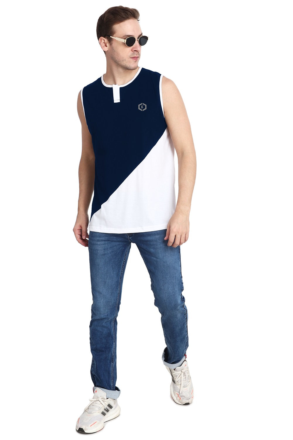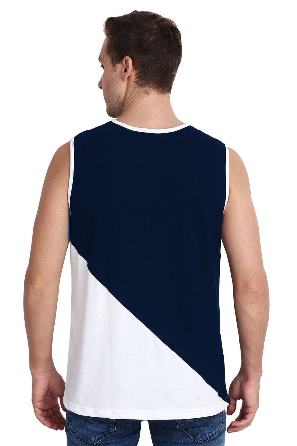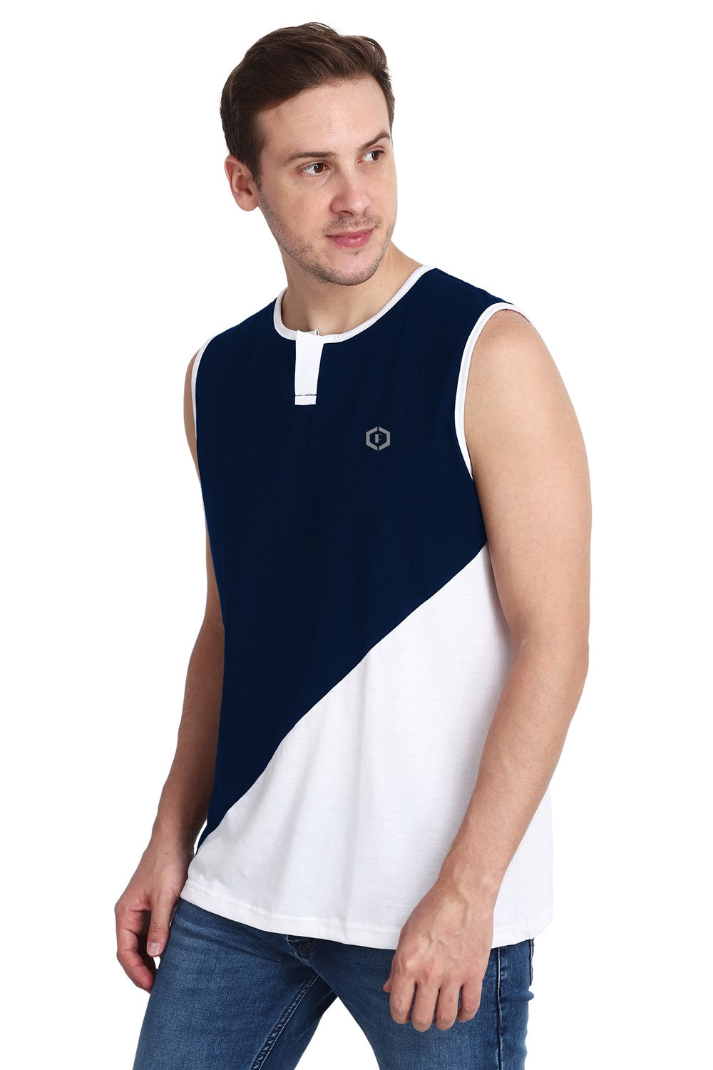 Mens Color-blocked Neck Slit Vest Slant Top Tank - Navy White