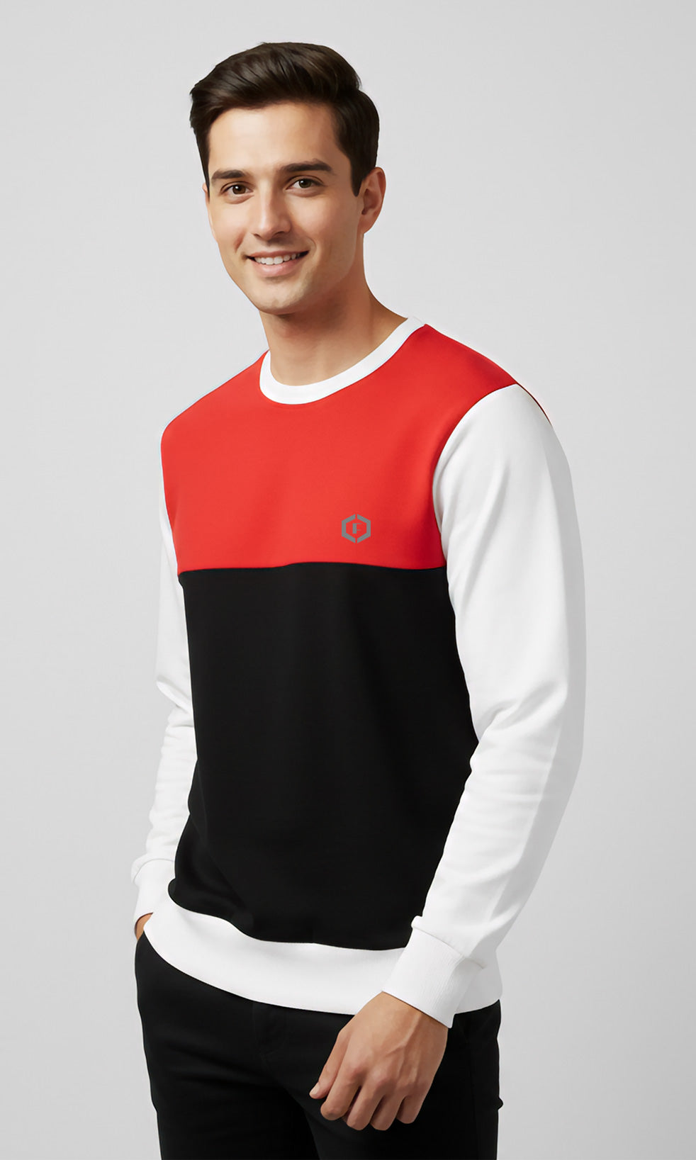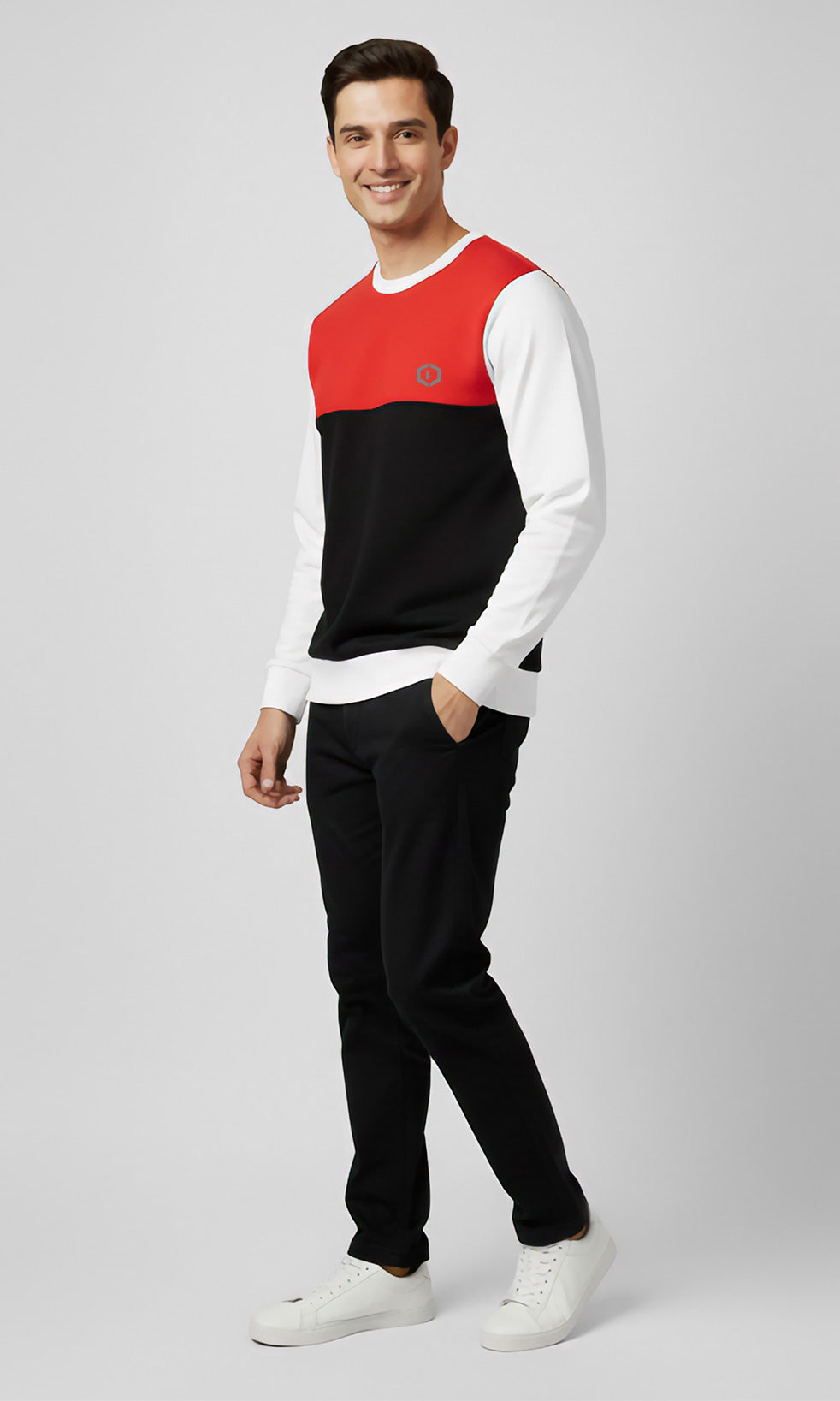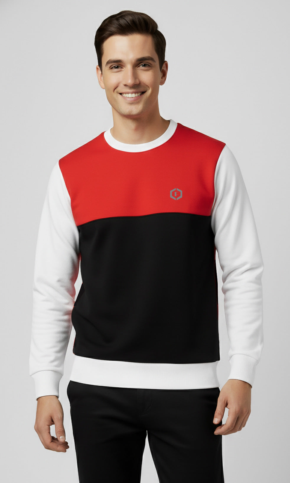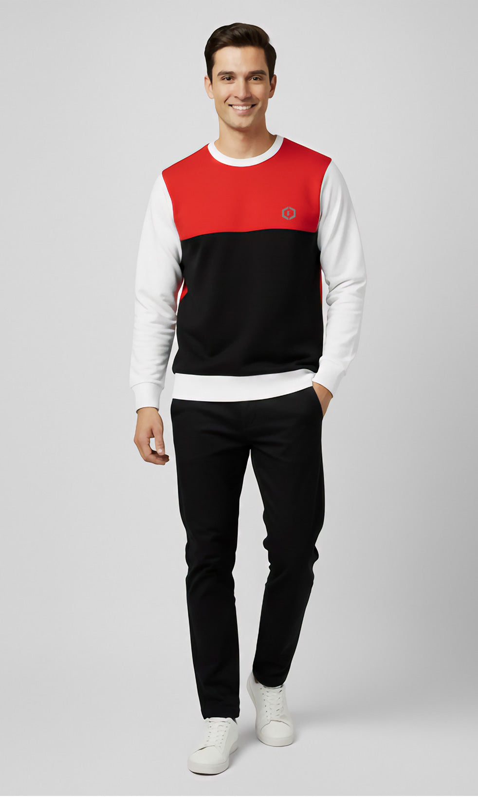 Engineered with a premium cotton blend, this men's sweatshirt delivers exceptional comfort through its thoughtfully designed horizontal colorblock pattern in red, black, and white. The relaxed silhouette and full-length sleeves provide optimal layering capability for transitional weather conditions. Its versatile aesthetic seamlessly integrates into diverse wardrobes—from casual ensembles with denim to refined combinations with chinos. The structured construction ensures reliable performance across multiple wear scenarios, whether for leisure or active pursuits. Proper care maintenance will preserve the garment's integrity and longevity over extended use.