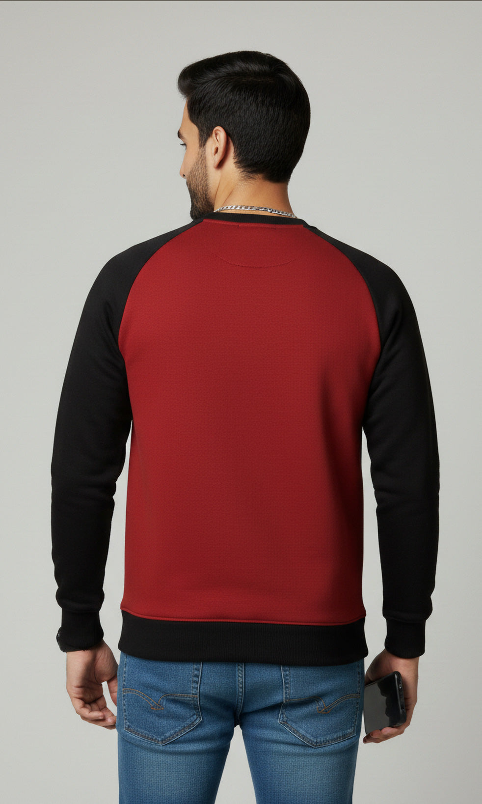 Solid Cotton Blend Mens Relaxed Fit Colorblock Sweatshirt- Black & Wine