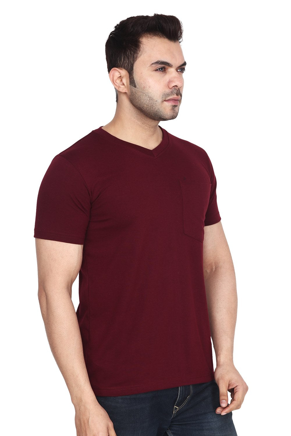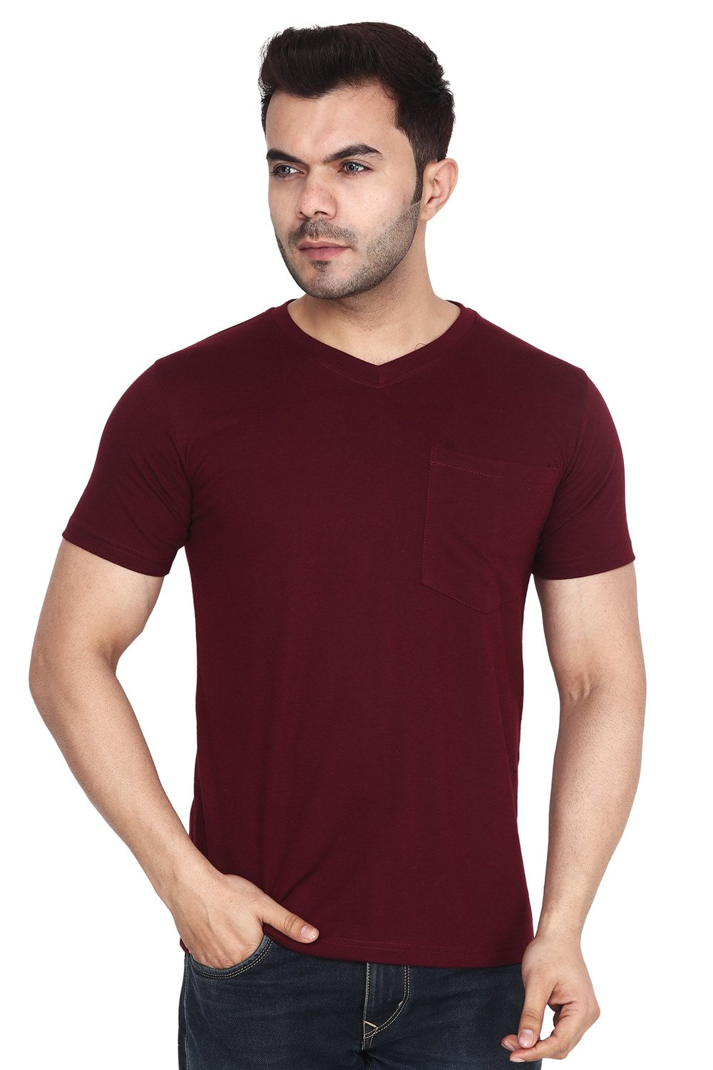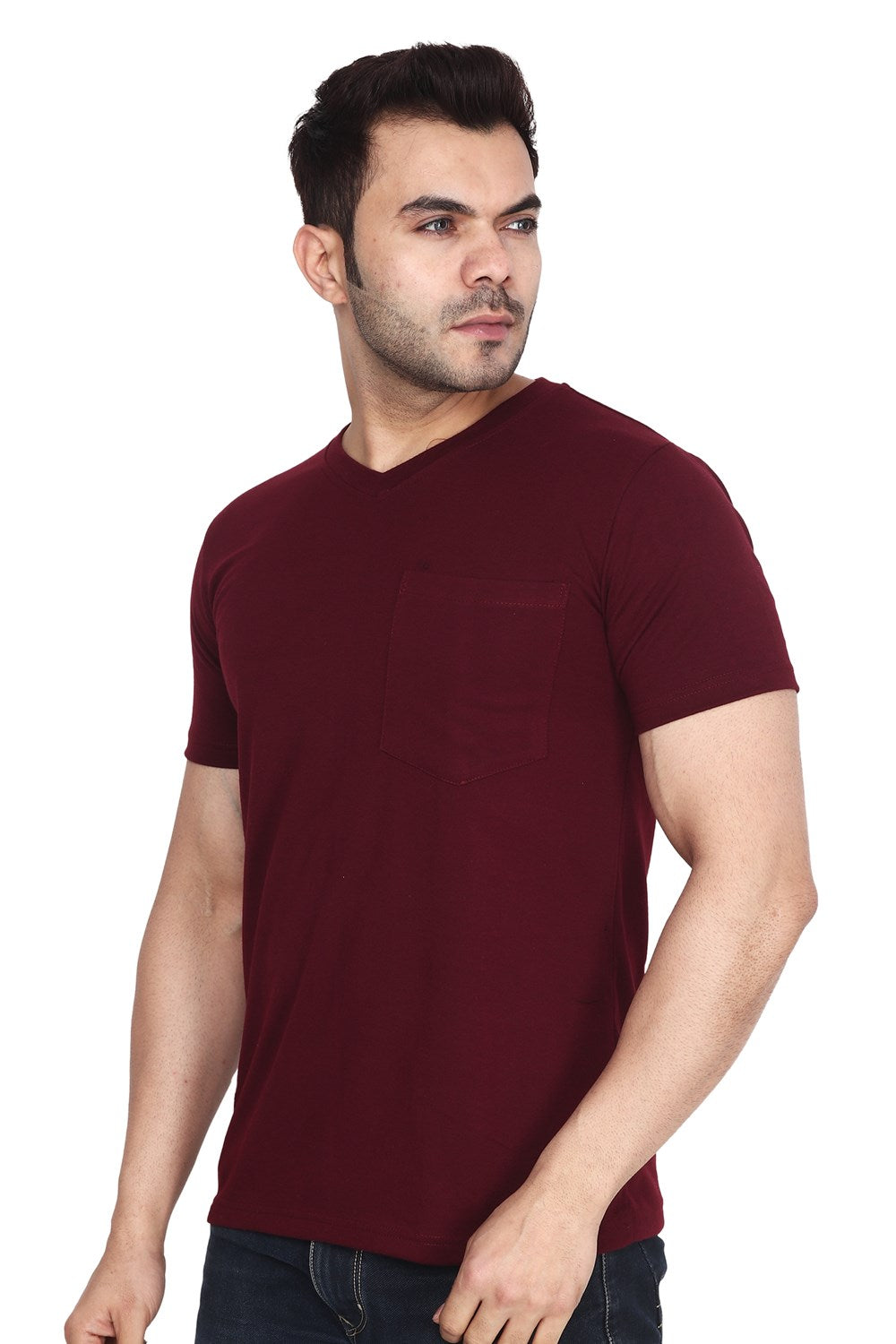 This half-sleeve, regular-fit V-neck pocket T-shirt combines style and comfort, crafted from a soft, premium 180 GSM poly-cotton blend. Perfect for casual outings, formal occasions, or everyday wear, it also suits gym sessions and workouts. Lightweight and versatile, it pairs effortlessly with jeans or trousers for a polished look.